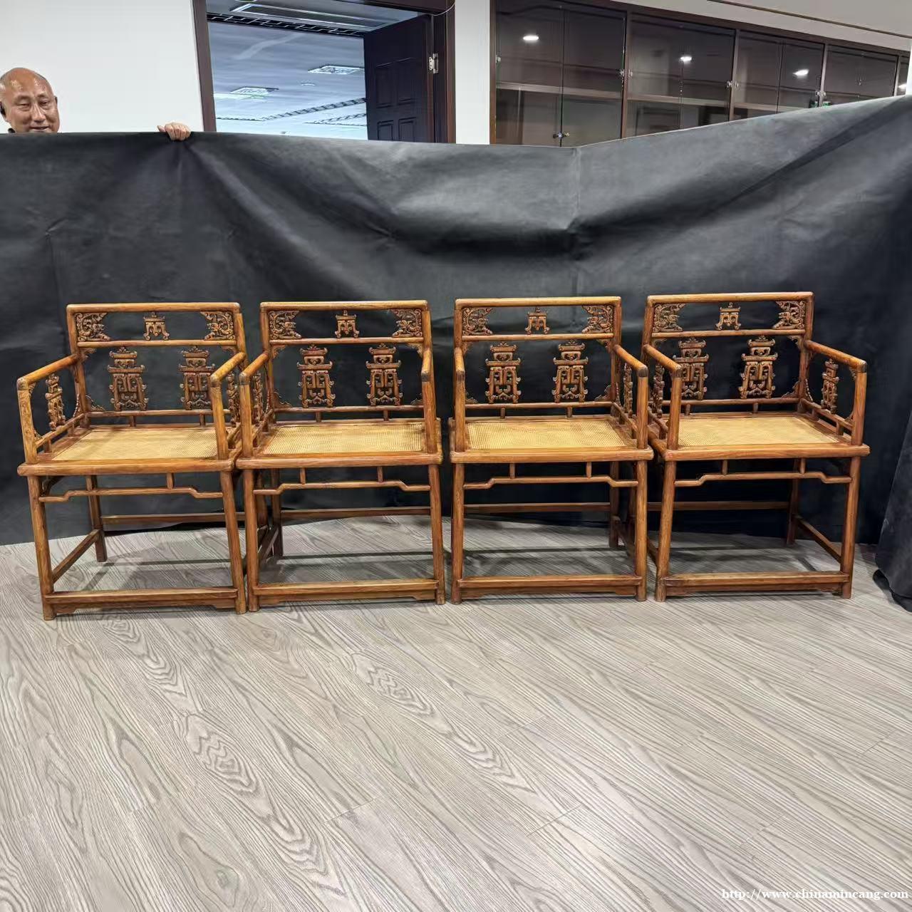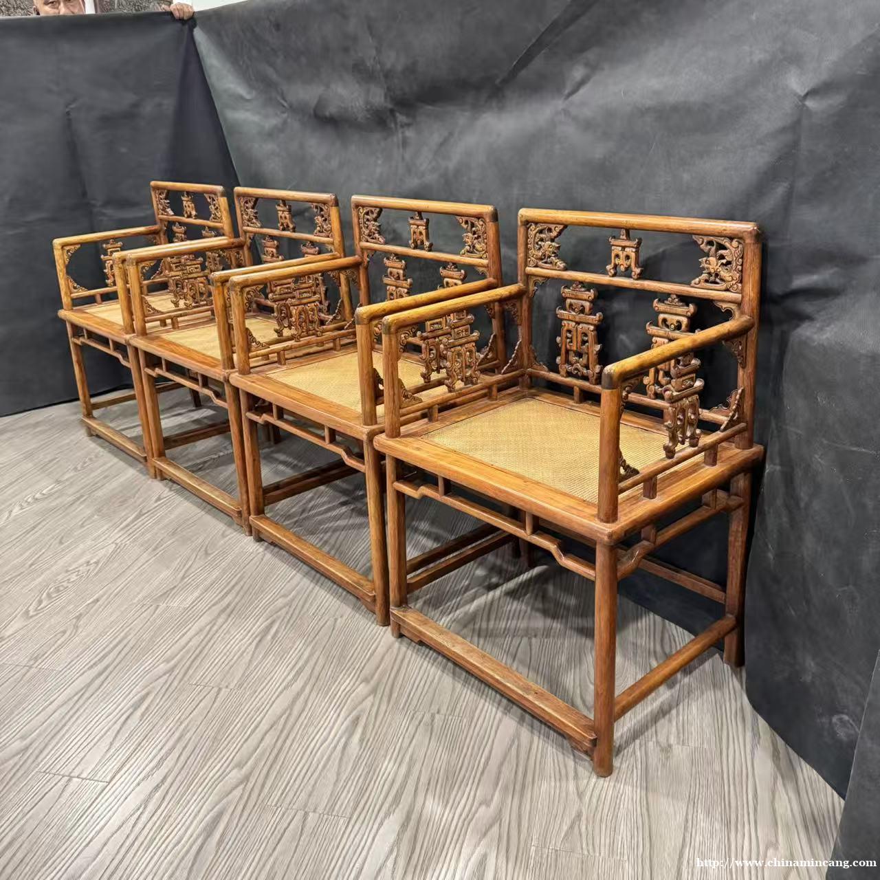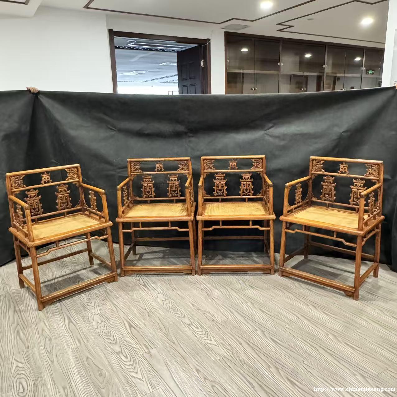 清早期黄花梨双钱纹玫瑰椅(四只)