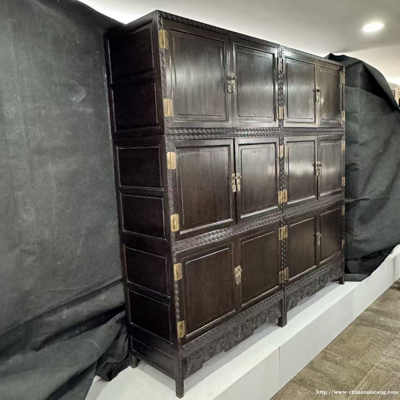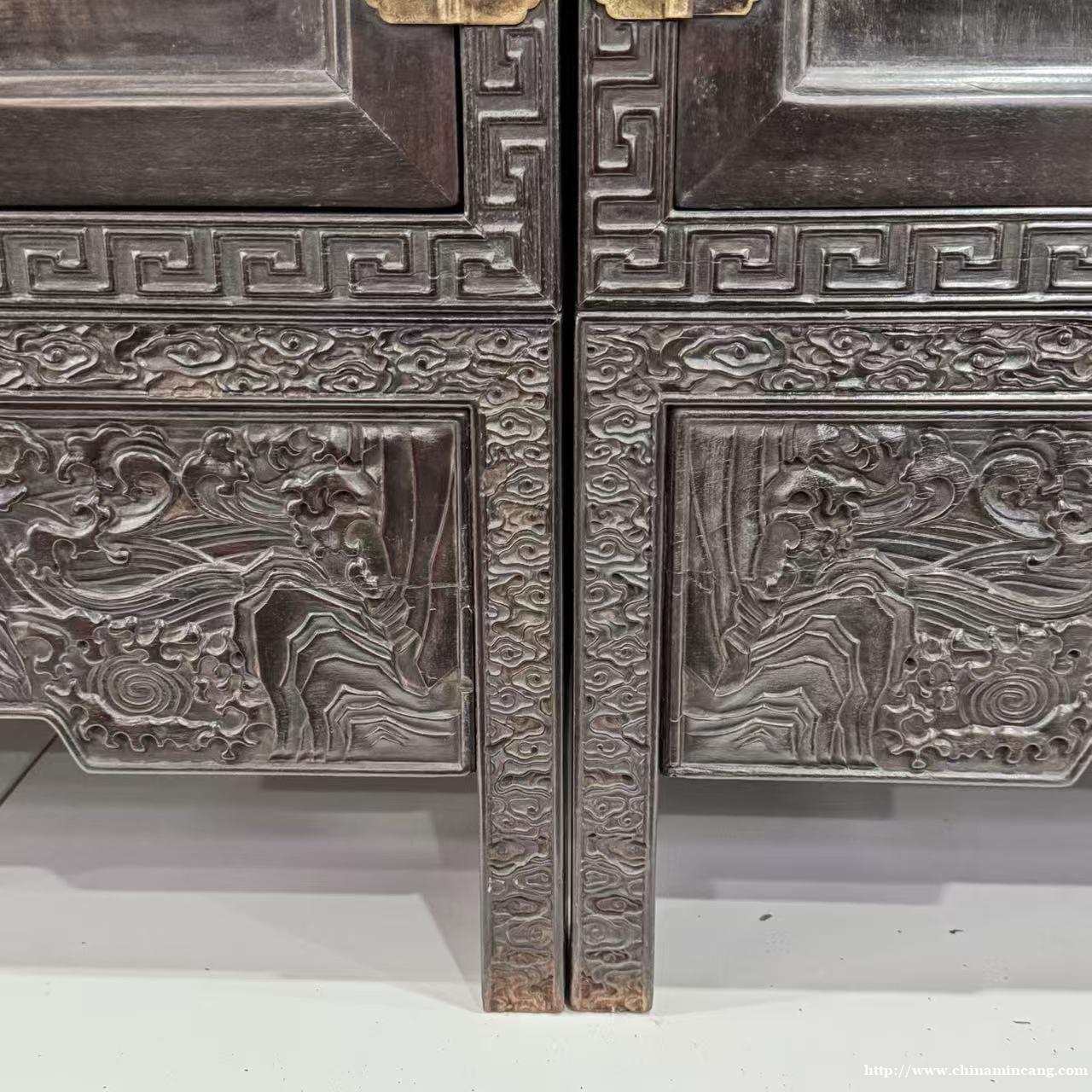 清紫檀回纹顶箱柜(一对)
