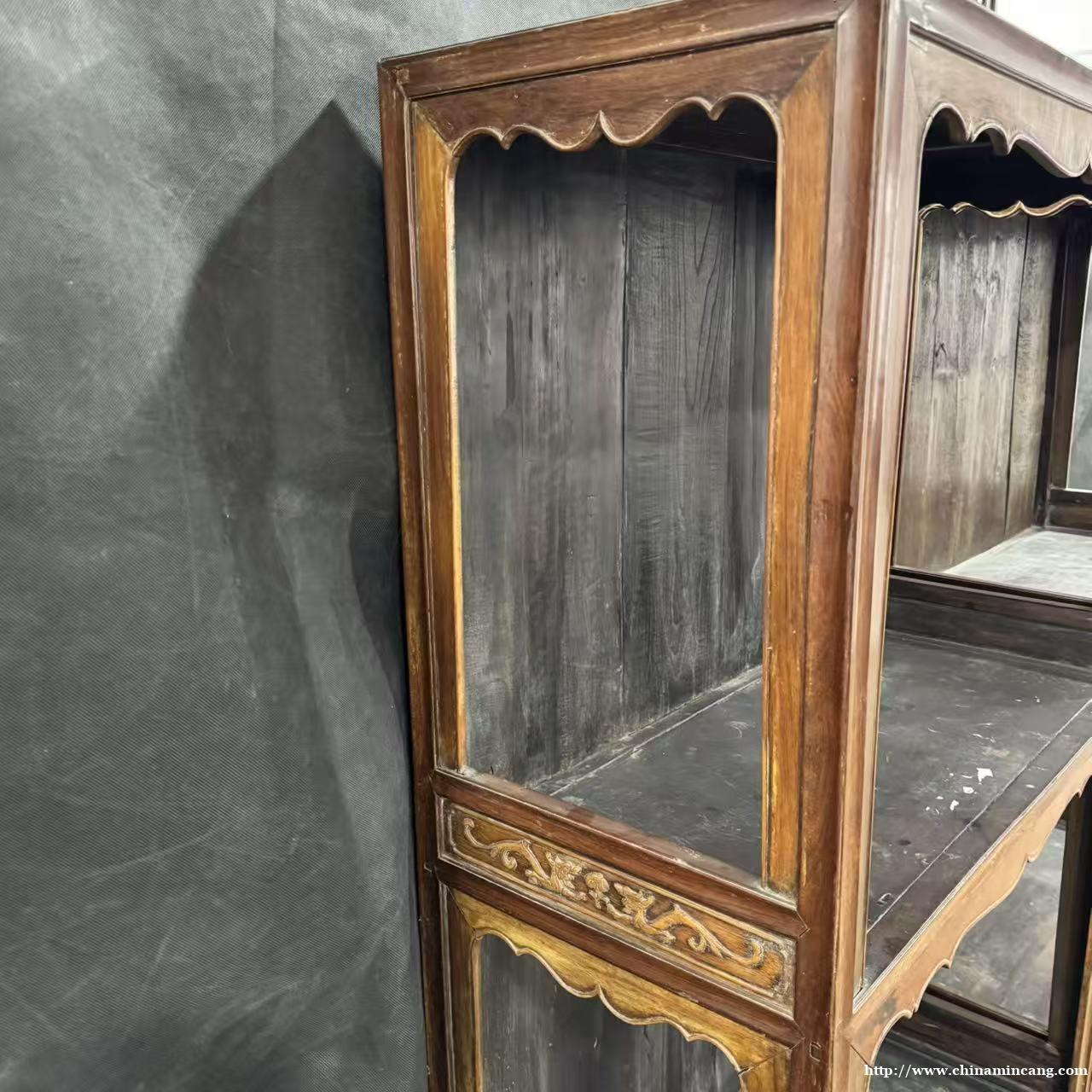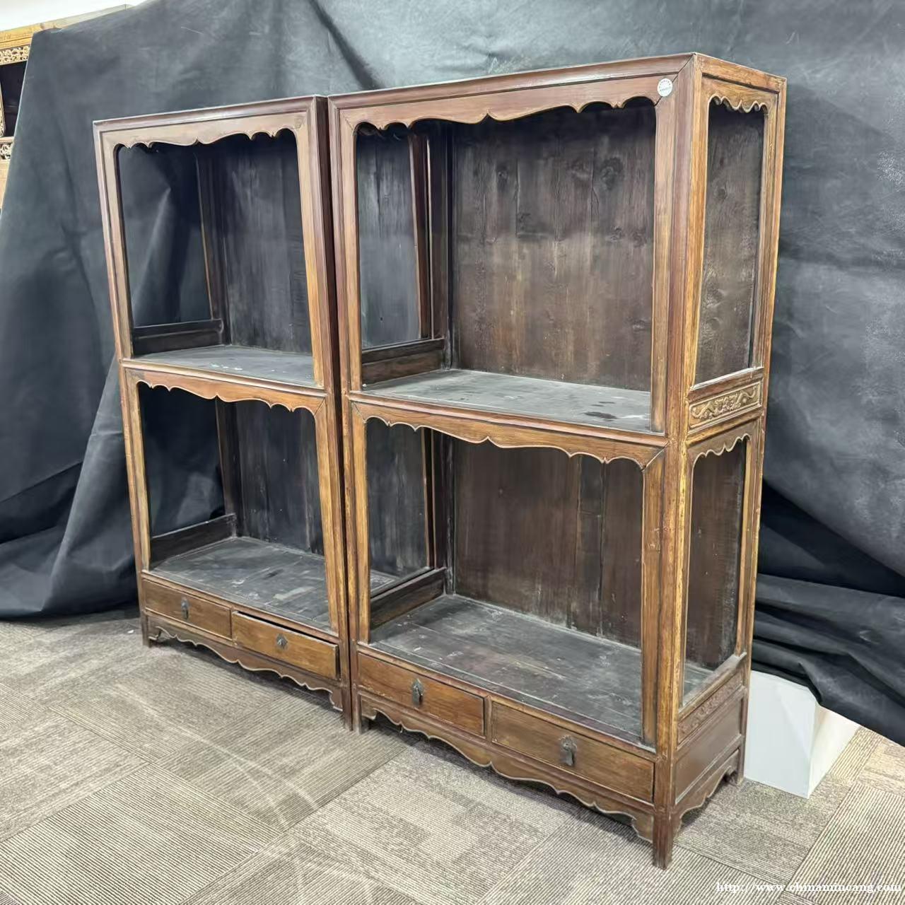 此对博古架甄选黄花梨优质大料制成,木质细腻温润,纹理行云流水,色泽醇厚沉稳,包浆温润古雅。整体造型规整大气,取对称式结构,分层设计合理,可陈设立各式珍玩古董。层沿与牙板饰以优美波浪纹,线条婉转流畅,极富东方韵律与审美意趣。柜体榫卯严谨扎实,结构稳固,历经岁月仍完好如初。一对成器,储物与陈设兼得,是清代黄花梨家具中兼具实用与收藏价值的文房雅作,亦是陈设豪宅的经典珍品。