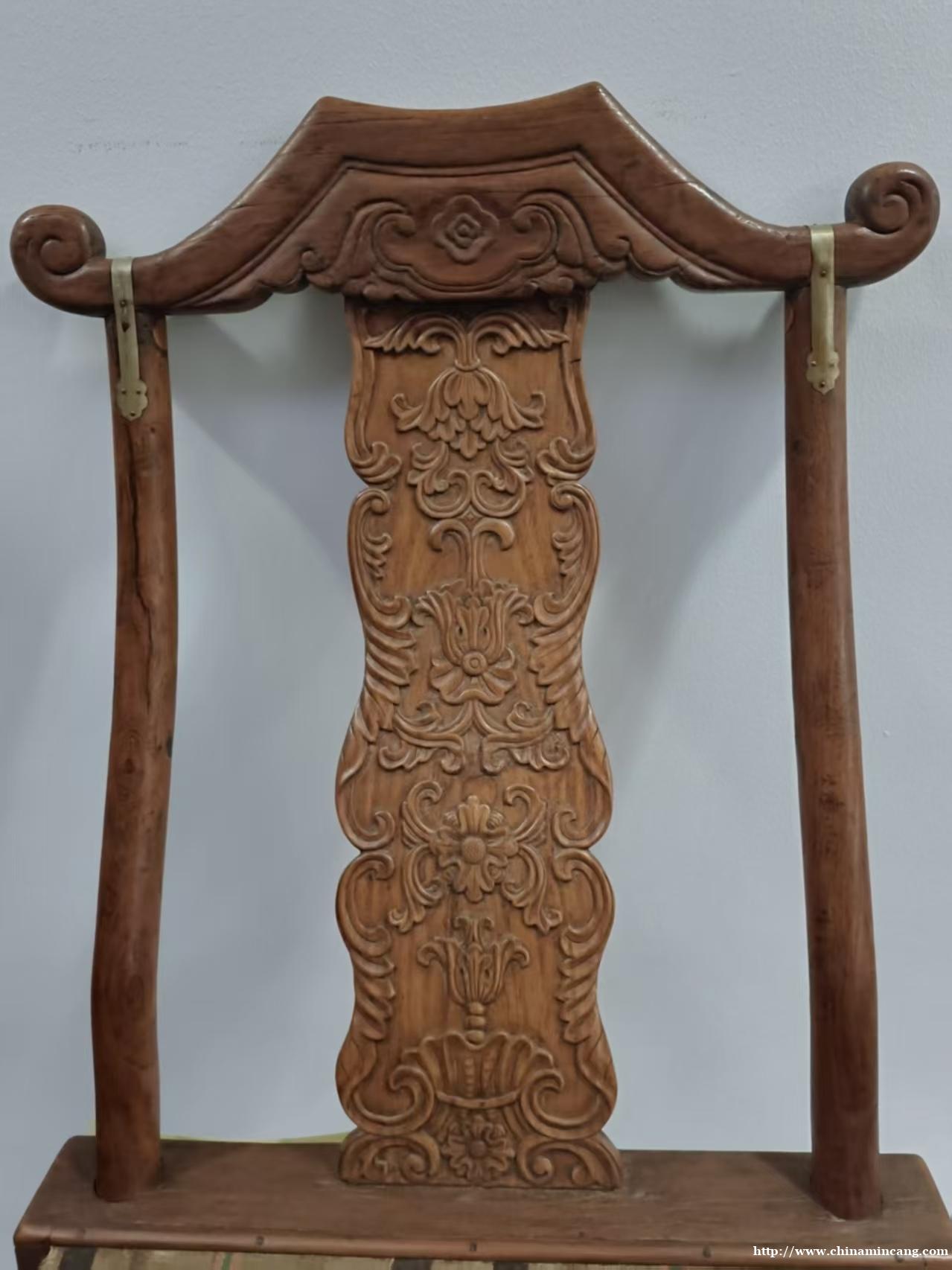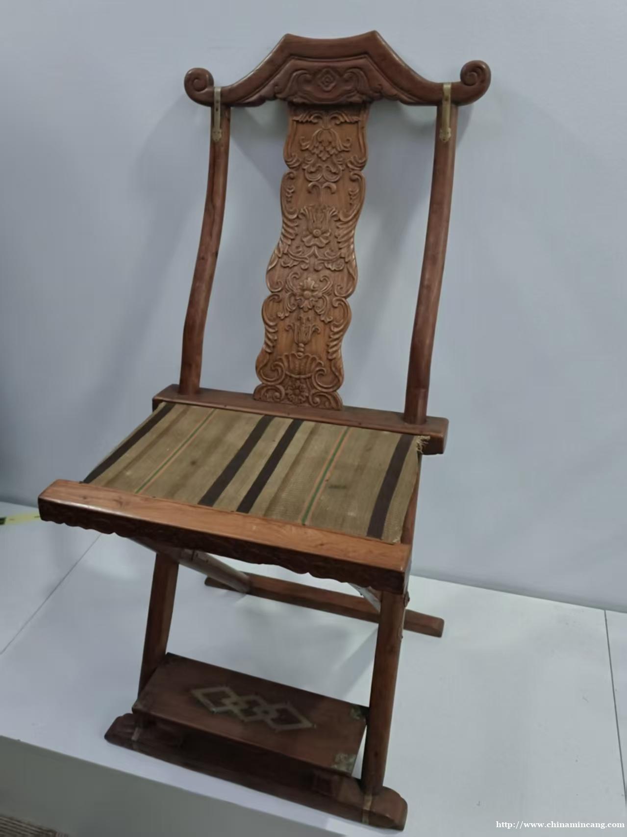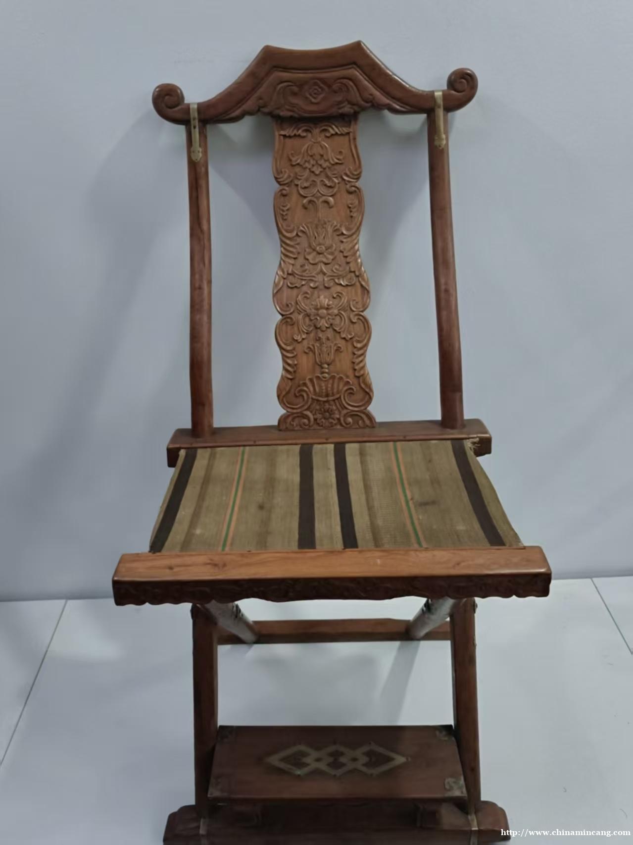 其工艺精湛,通体采用传统榫卯结构,楔钉榫拼接严密,关键节点镶嵌铜饰件加固,既稳固耐用,又添金属质感的贵气。靠背板浮雕繁复吉祥纹样,层次分明,彰显清早期宫廷造办处的精湛技艺。此椅既可折叠实用,亦可作为中堂主位陈设,极具收藏与陈设价值。