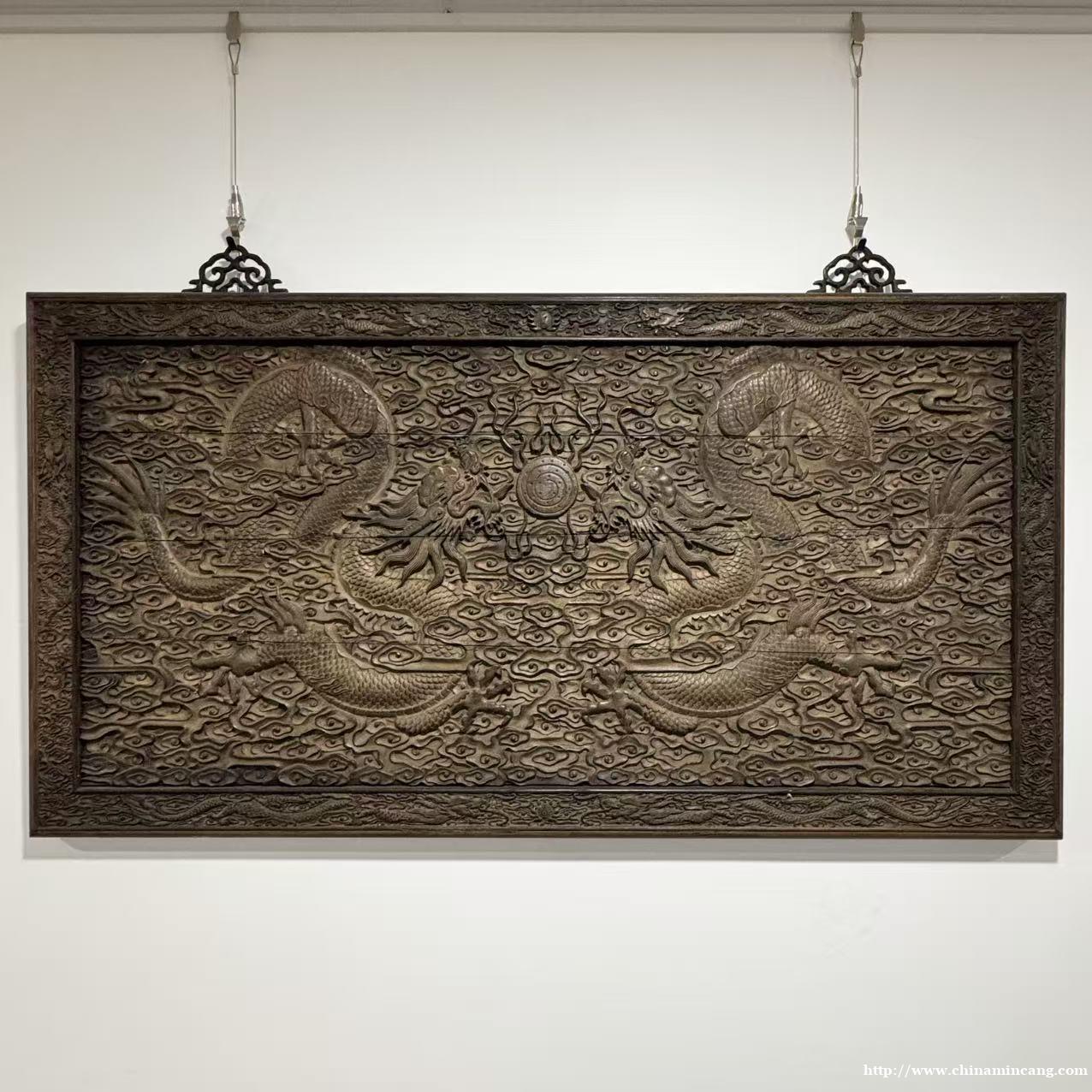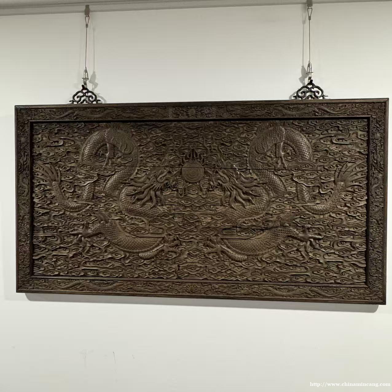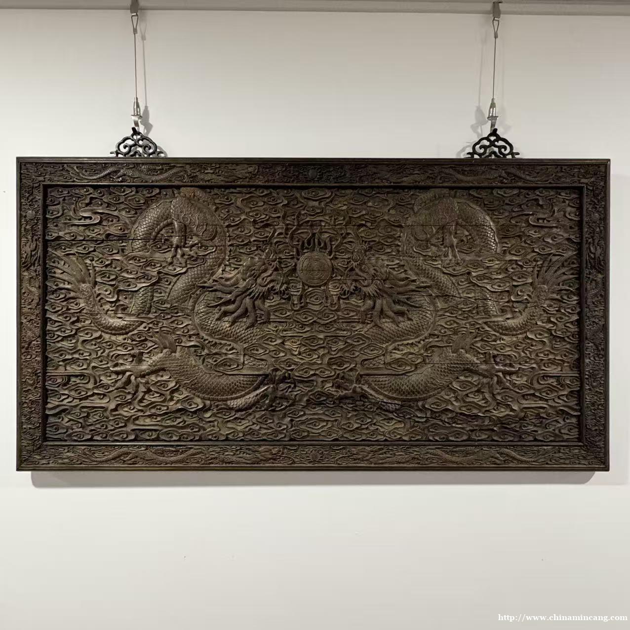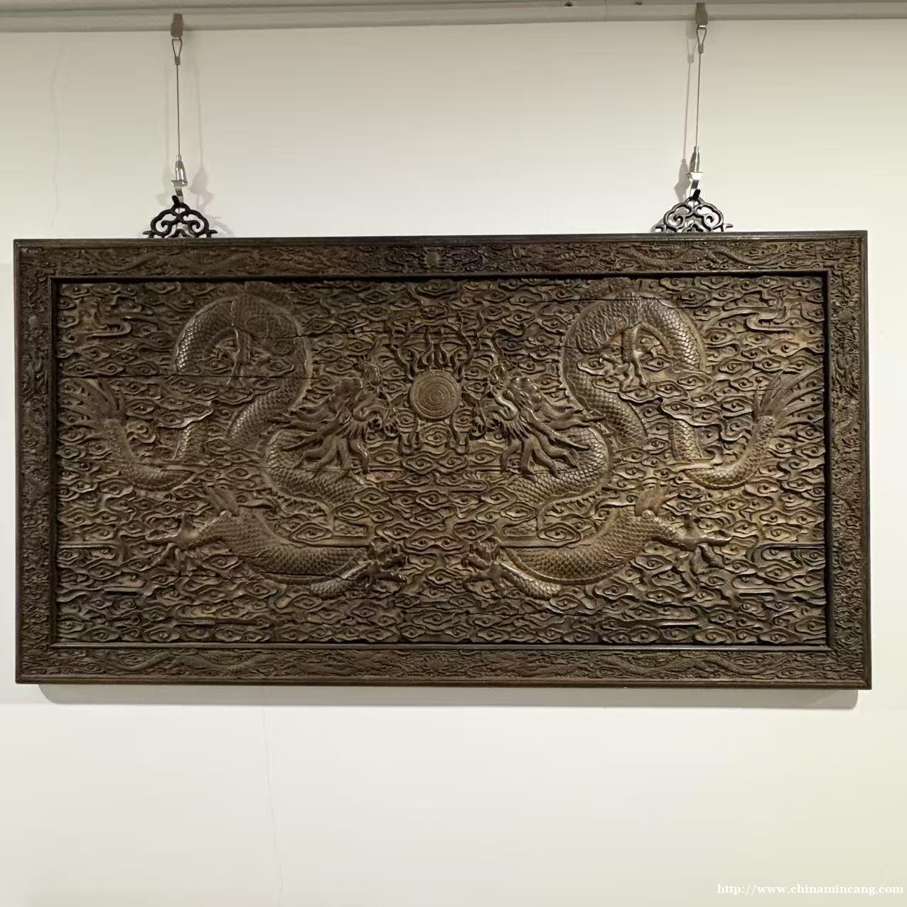 工艺上采用透雕、浮雕相结合的技法,层次分明,线条流转自然。边框与挂环设计考究,铜饰件点缀,既增强了实用性,又提升了装饰格调。作为厅堂、书房的镇宅陈设,它不仅是空间装饰的点睛之笔,更是极具历史底蕴与艺术价值的收藏佳品,尽显宫廷家具的雍容气度。