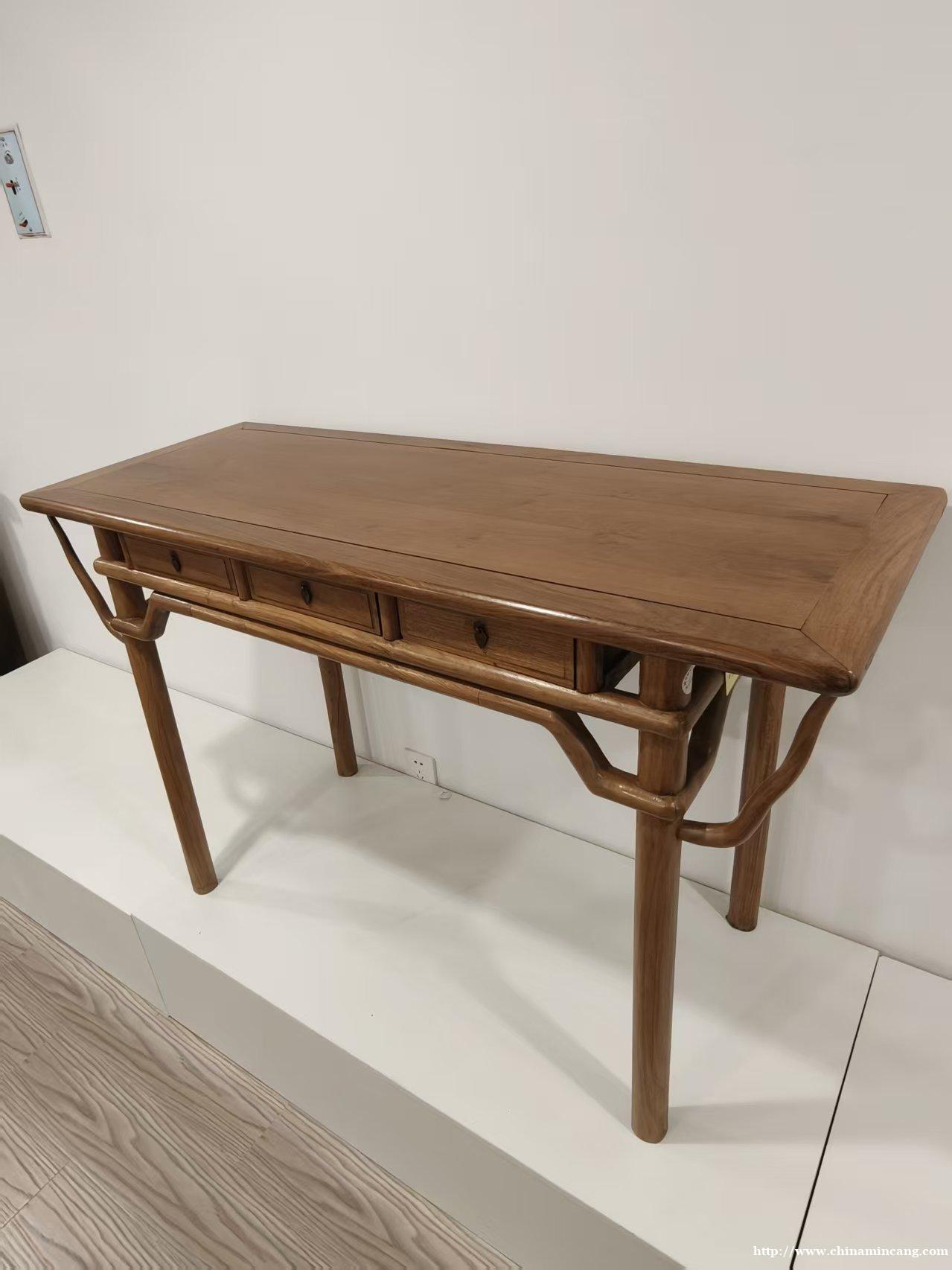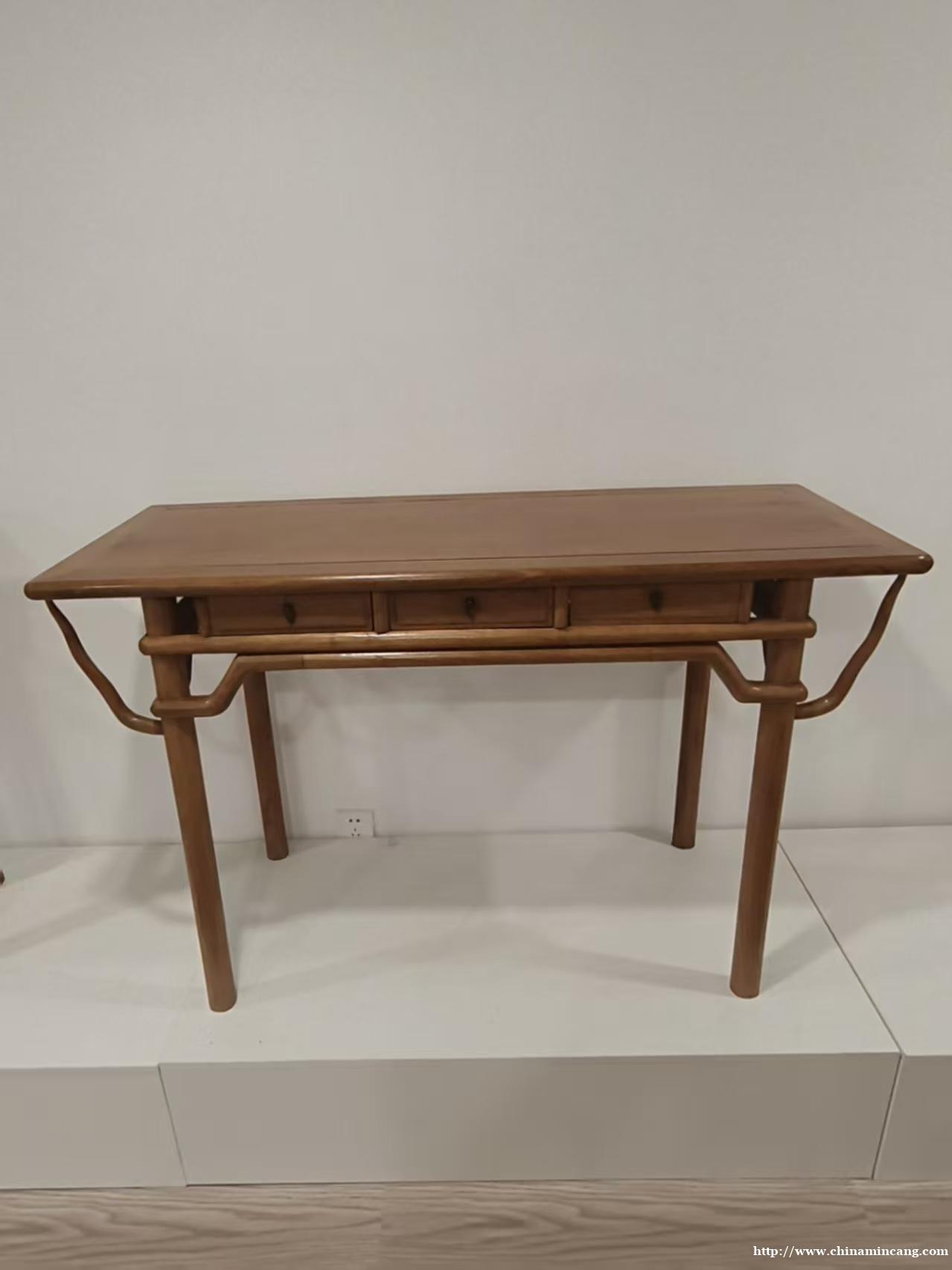 桌体整体造型简约大气,三抽一字排开,抽屉布局规整,既实用又具视觉秩序感。桌型承袭清式风格精髓,桌腿线条挺拔有力,整体比例协调,线条流畅不繁琐,尽显清代家具的端庄与稳重。