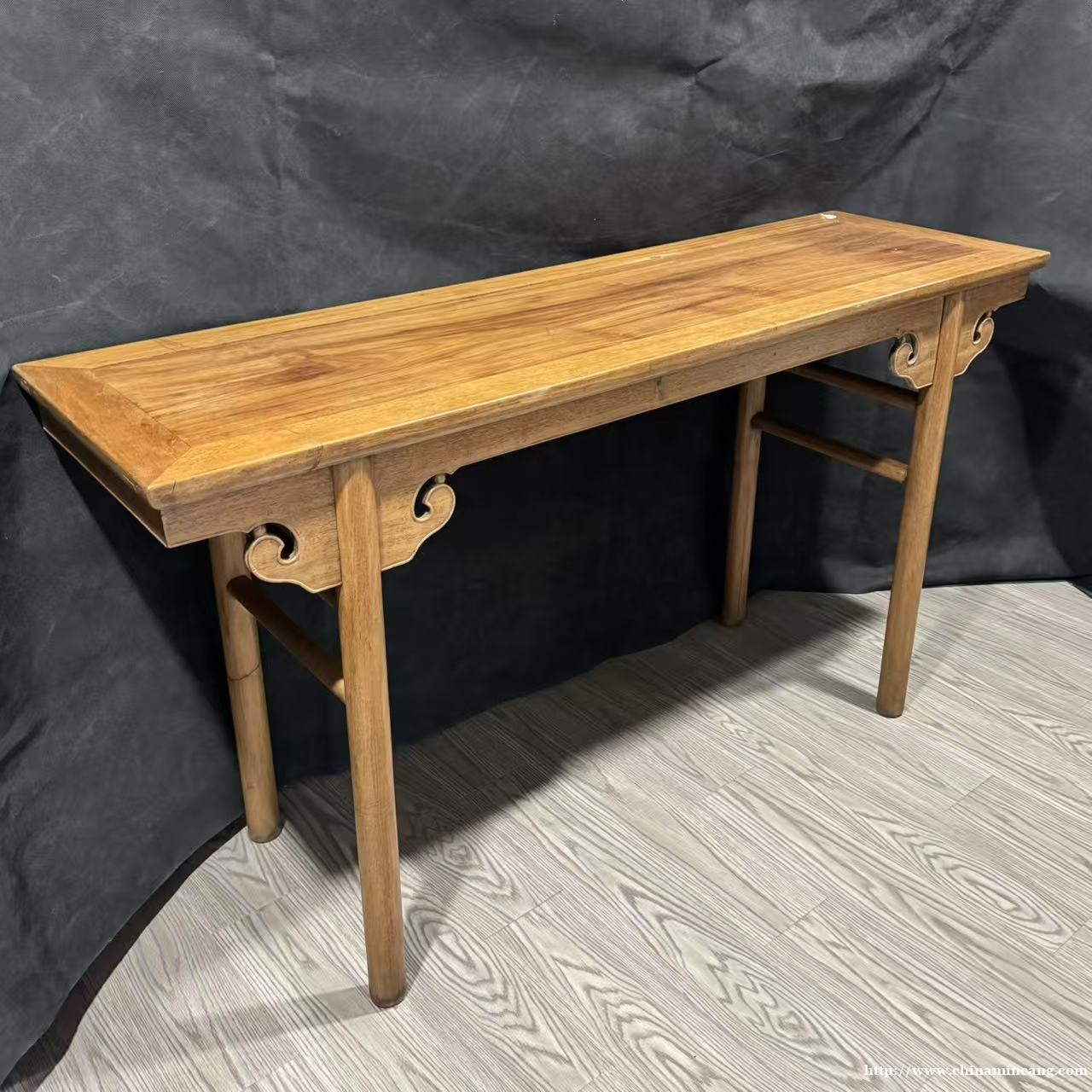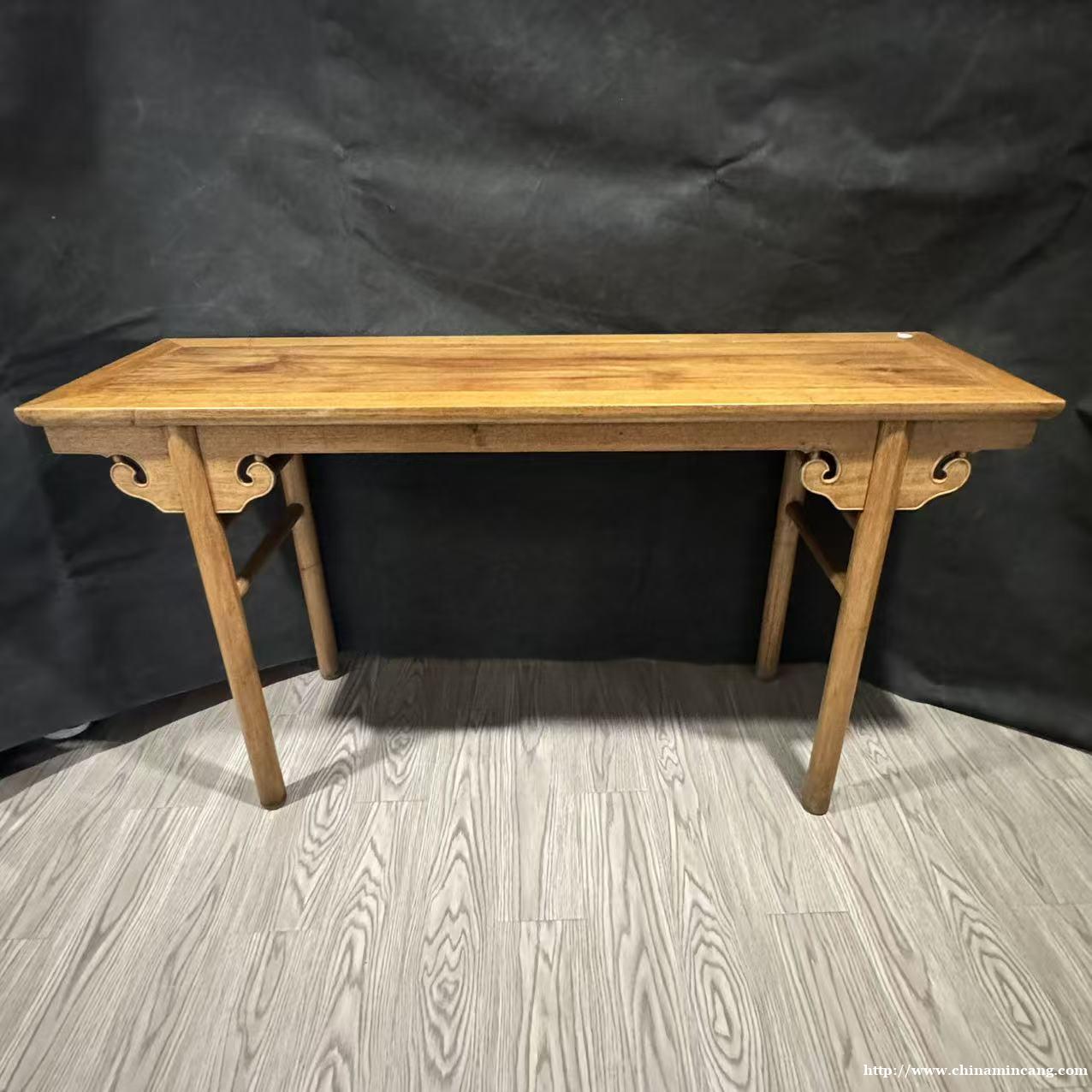 此件清早期黄花梨卷草平头案,造型典雅舒展,线条刚柔并济。案面平整光润,边缘起线圆润,尽显黄花梨木质细腻质感。牙板浮雕卷草纹,纹样婉转流畅,纹理自然缠绕,刀法洗练,与案身的简约线条相得益彰。四足端立柱式支撑,足端微撇,搭配牙头与牙条的精巧衔接,稳固又显雅致。整体形制规整,比例协调,既有明式家具的简约隽永,又蕴含清早期家具的工艺考究。置于空间中,既是承载文韵的实用陈设,亦是见证古典工艺的传世器物,尽显中式家具的内敛气韵。