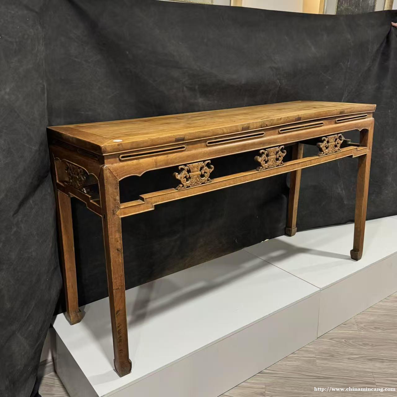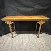 此件清代黄花梨条桌,以珍贵黄花梨木为材,木质温润细腻,纹理自然流畅。桌体造型规整大气,整体线条舒展利落,兼具实用与陈设美感。