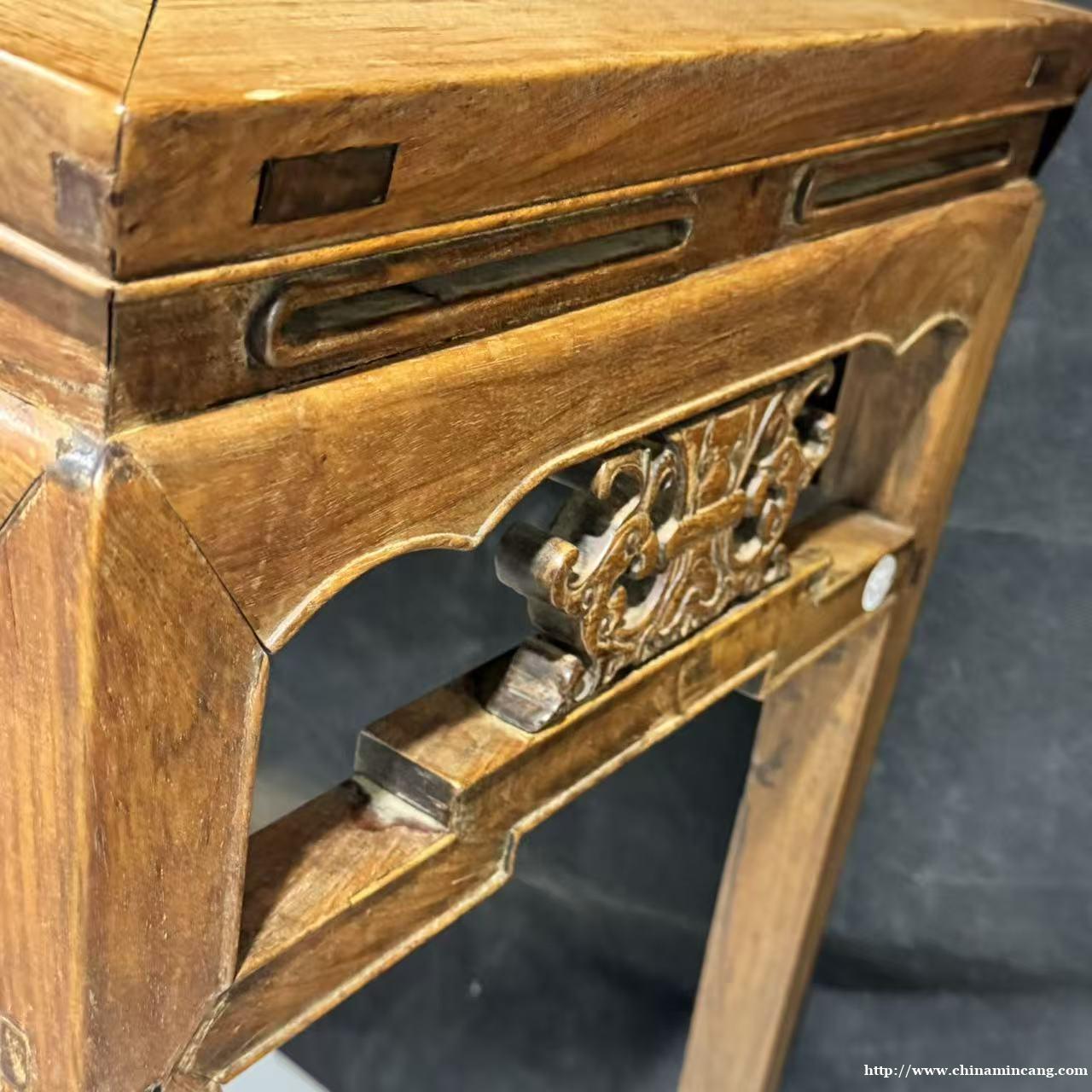 桌面装饰卷草纹与如意纹,卷草纹婉转灵动,寓意生机绵延;如意纹圆润雅致,传递顺遂吉祥的美好期许。雕刻刀法洗练,纹样与桌身融为一体,尽显工艺考究。