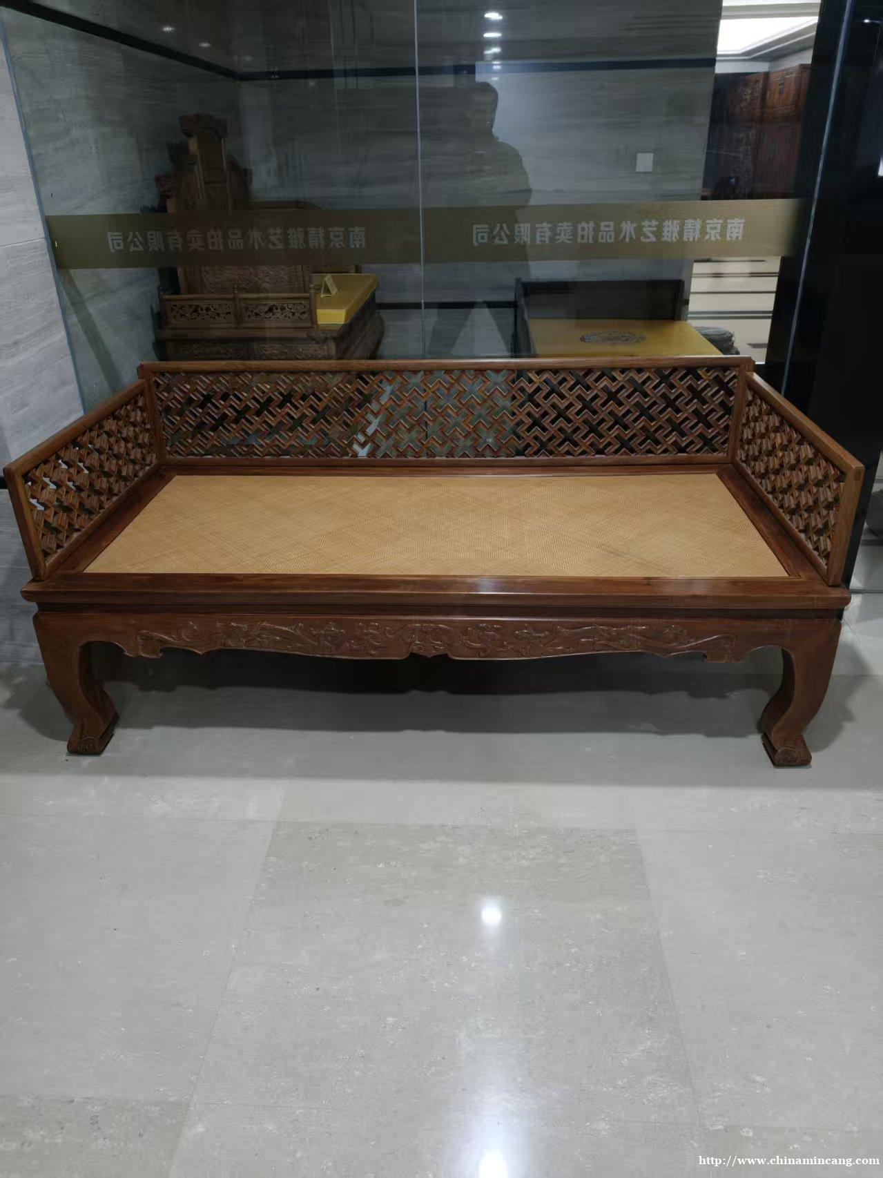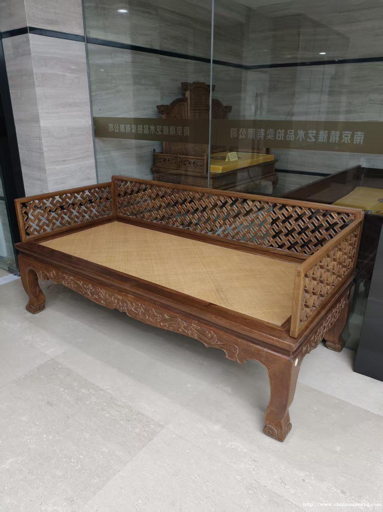 主体以黄花梨打造,木质温润细腻,纹理清晰灵动。床身牙板浮雕纹饰,与围子纹样相得益彰,工艺精湛。整器既可作为休憩起居的实用家具,亦是厅堂陈设的镇宅重器,极具收藏与艺术价值。