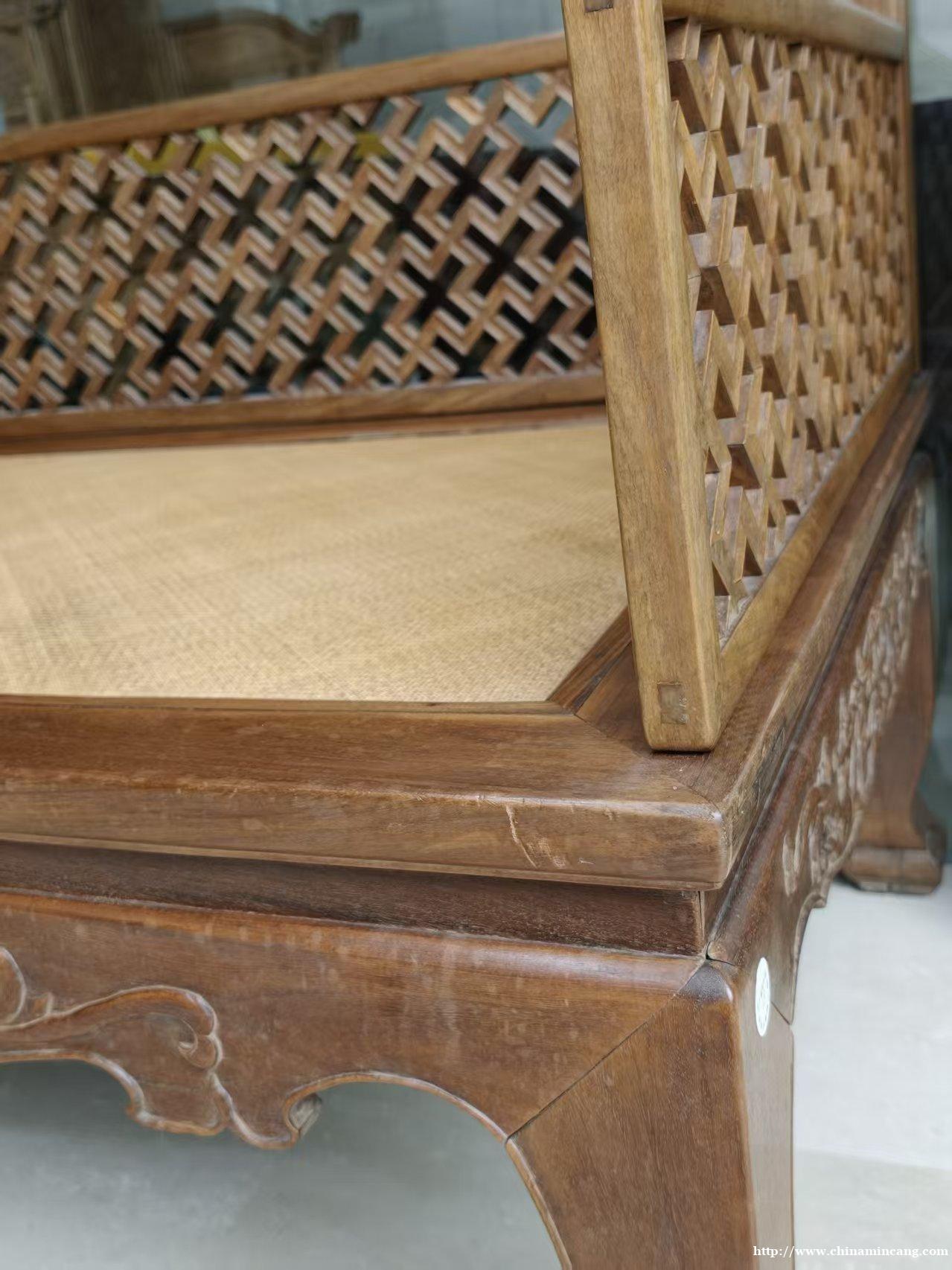 床围子采用经典的万字纹透雕设计,纹样连绵不断,寓意“万福万寿”、基业长青。构图规整严谨,刀法圆润洗练,透光处尽显雅致气韵,是明代家具中装饰与吉祥文化融合的典范。