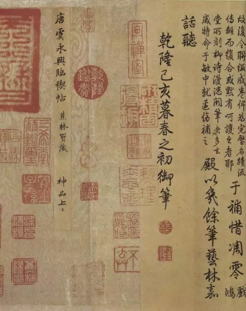 当然,除了瓷器,书画乾隆也不会放过,碰上喜欢的作品,那是要直接拿笔在上面点评几句的,然后啪,盖个章。一般章的内容是“乾隆御赏之宝”“三希堂精鉴玺”等等,三希堂是乾隆的堂号,意思就是说,“朕已阅,点赞!”简直是一个点赞狂魔