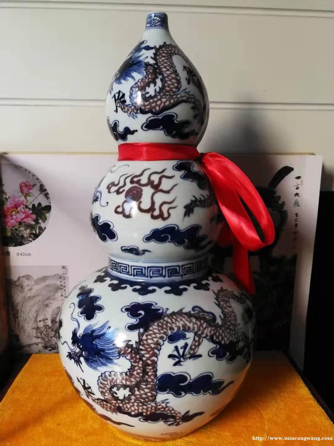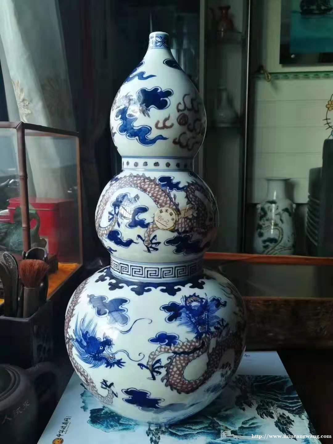 大清康熙年制款青花釉里红龙纹葫芦瓶