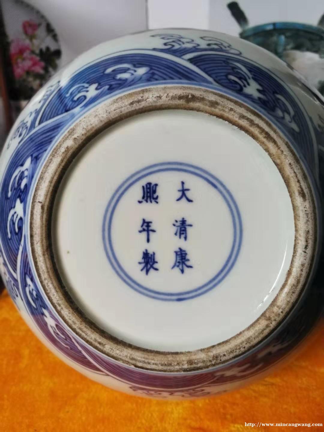 康熙百子图大笔海,用的是云南的珠明料!所以烧出的颜色是典型的翠毛蓝!紧皮亮釉的质感!墨分