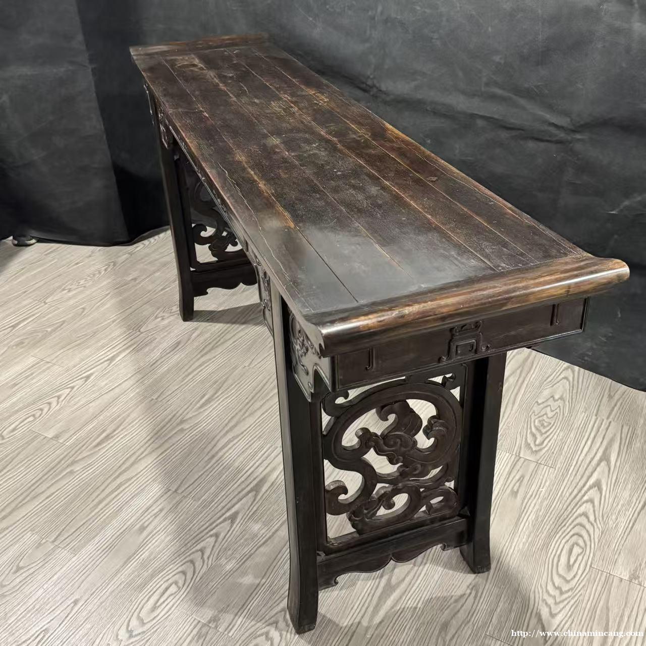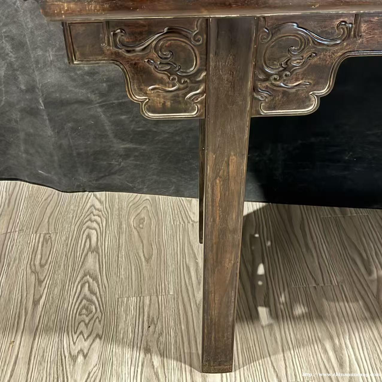 这件清代紫檀螭龙纹翘头案,以珍贵紫檀为材,木质沉稳重器,包浆醇厚自然。整体造型端庄大气,线条流畅舒展,尽显古典家具的雅致气韵。